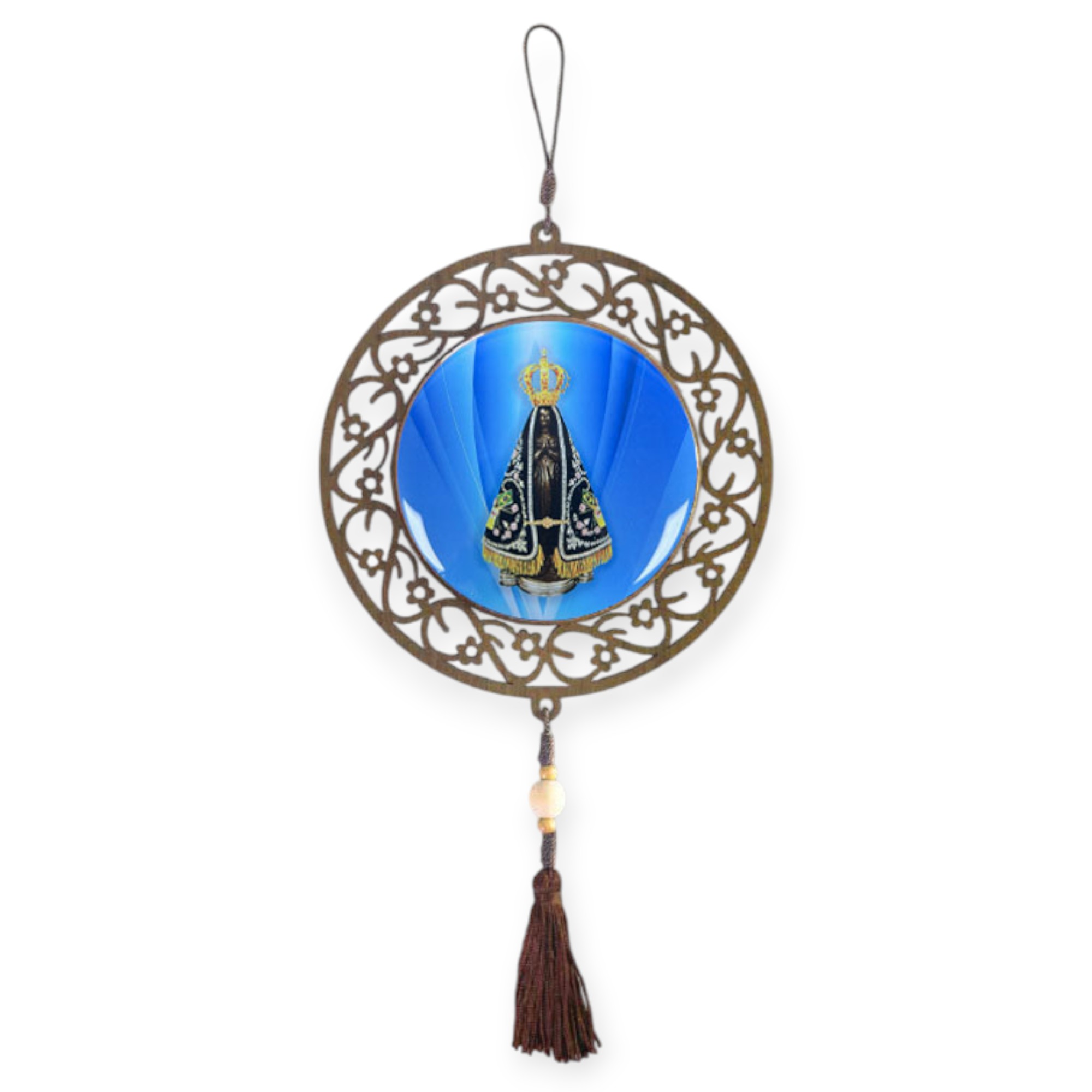 Adorno de Porta N. Sra. Aparecida Redondo com Arabesco em MDF 32cm Diâmetro do medalhão: 14cm