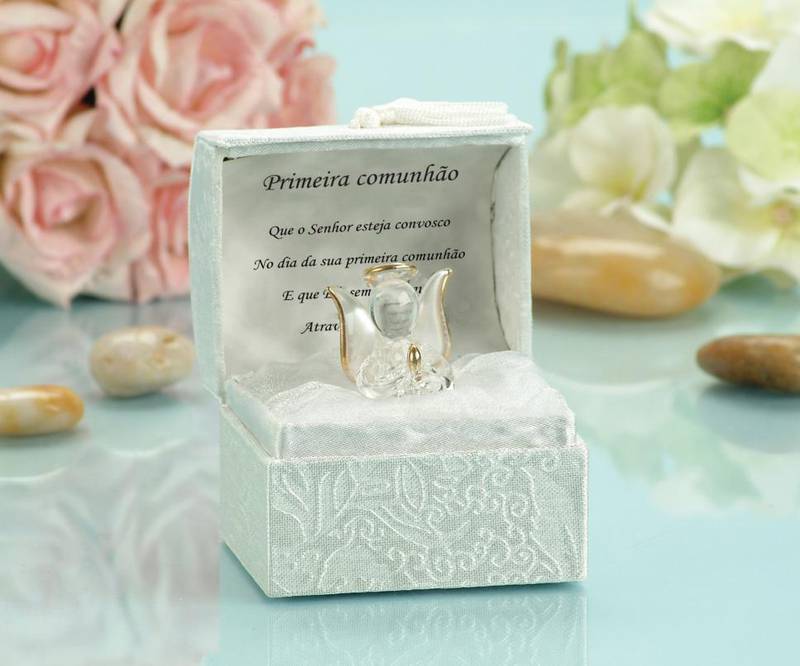 Baú Anjo Cristal Eucaristia.Dimensões: 9,2cm x 7,2cm x 9cm