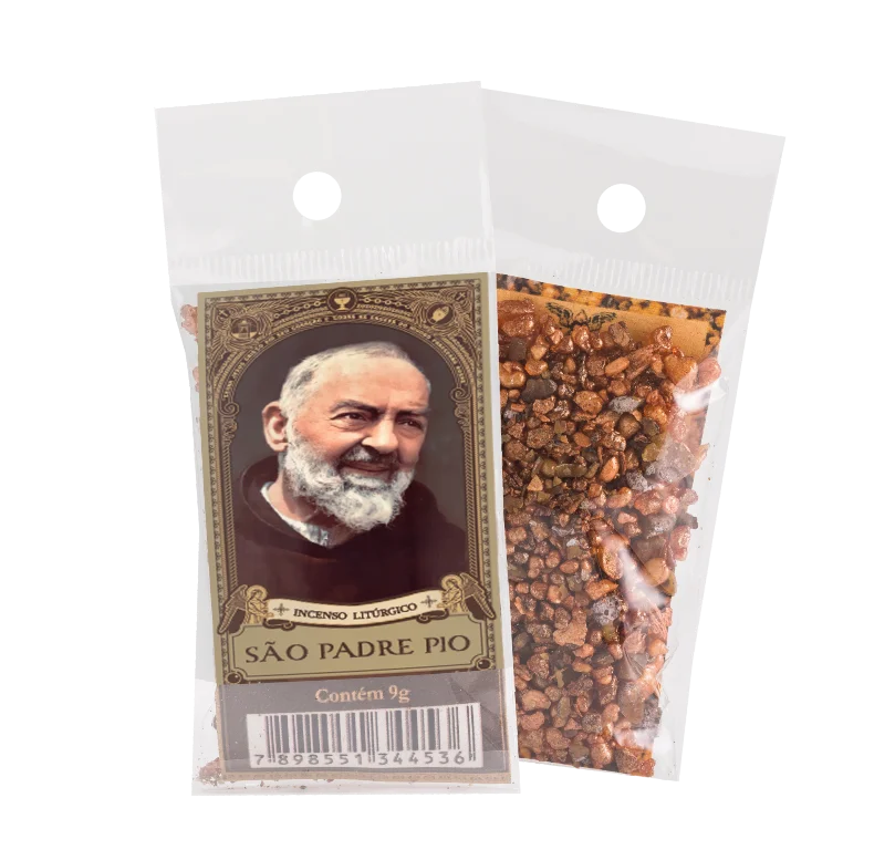 Saquinho contendo 9g de incenso São Padre Pio.