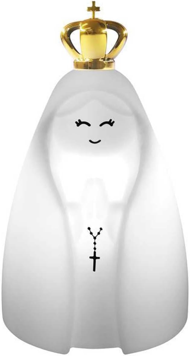 Luminária Nossa Senhora Aparecida com coroa metalizada dourada, perfeita para seu ambiente, feita em polietileno ela agrada a toda as idades.