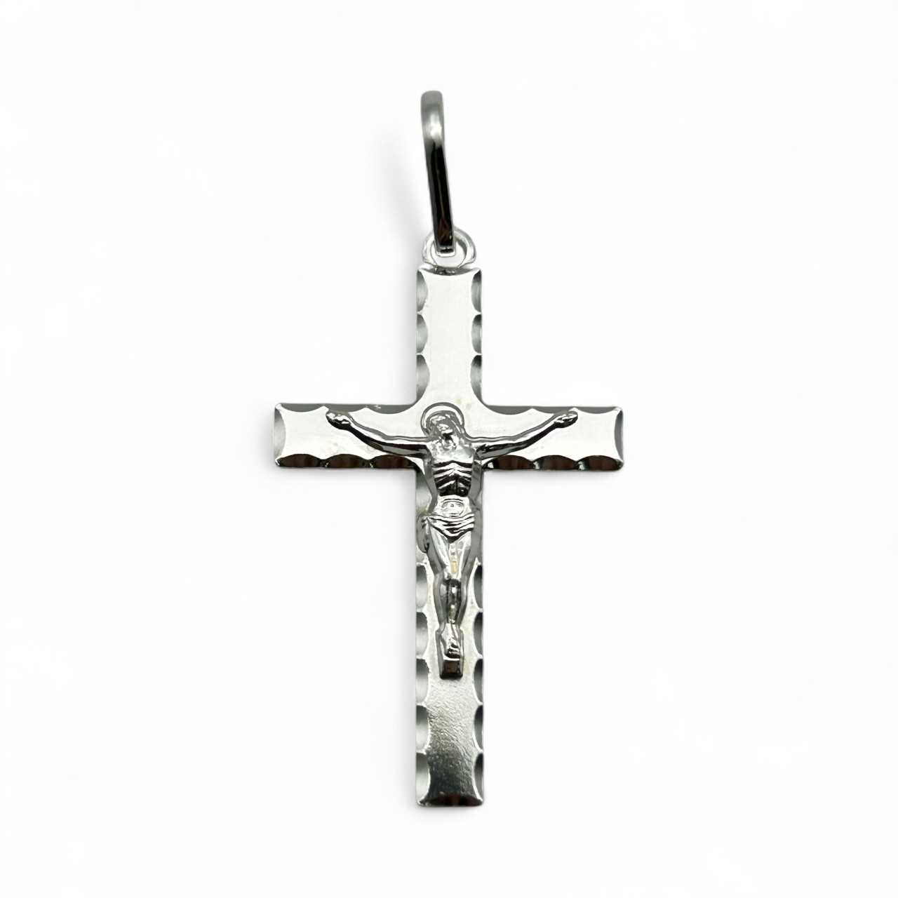Pingente de Prata Cruz com Cristo Borda Diamantada 25x15mm