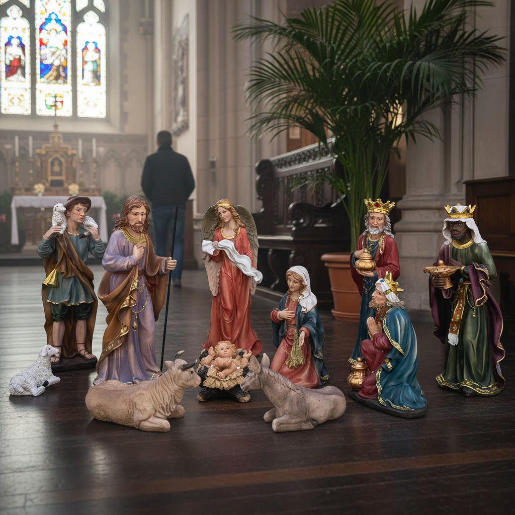 O Presépio de 90 CM é fabricado em resina, material de alta resistência e acabamento impecável, feito artesanalmente com tinta acrílica a base de óleo, agregando valor, beleza e acabamento único a cada peça.