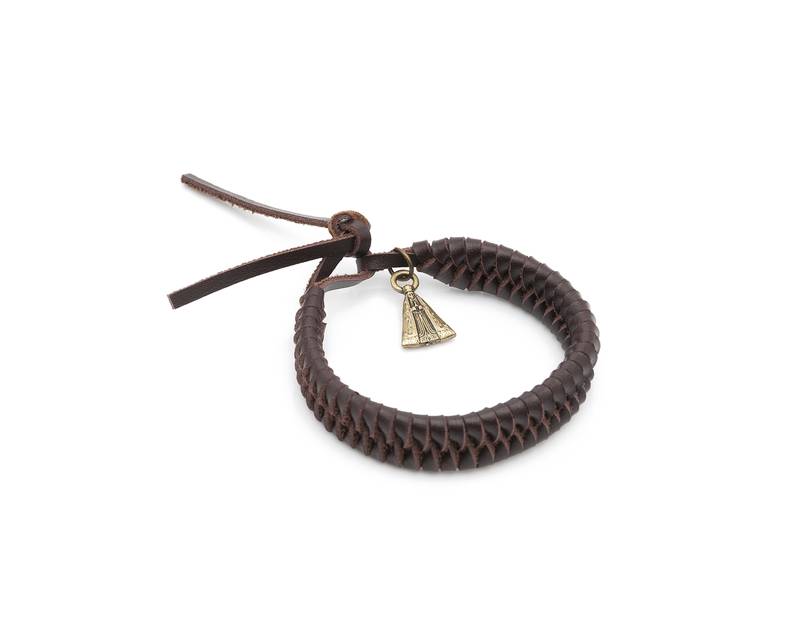 Pulseira Couro Marrom Trançado Nossa Senhora Aparecida