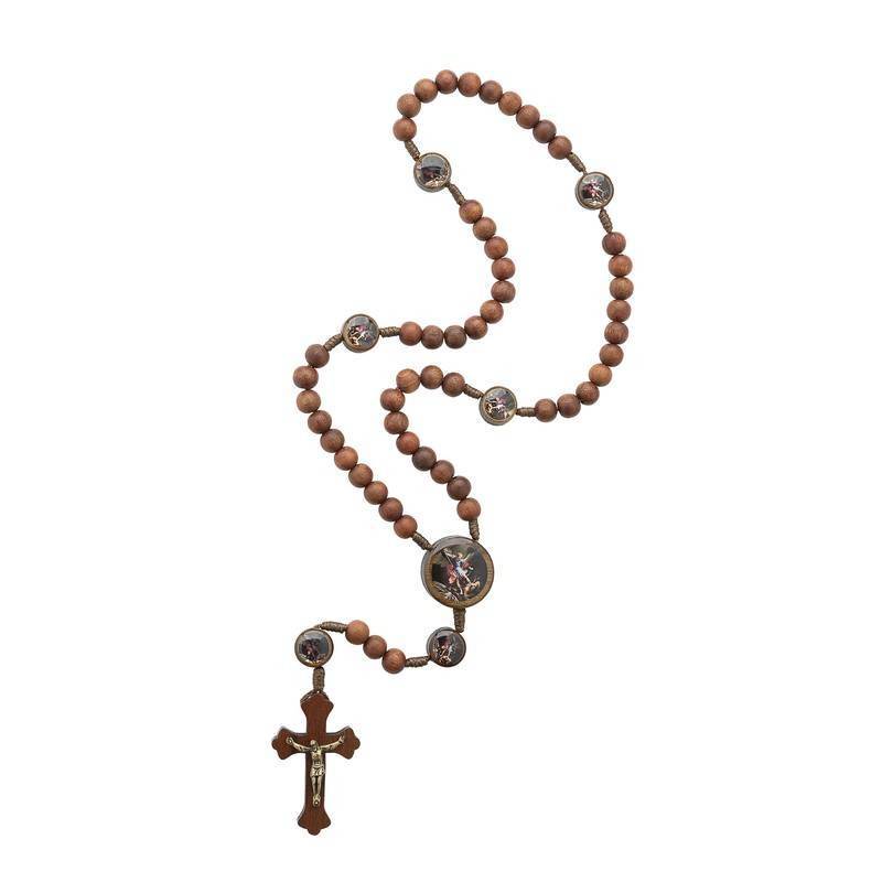 Terço De São Miguel Arcanjo Madeira Canela 8mm